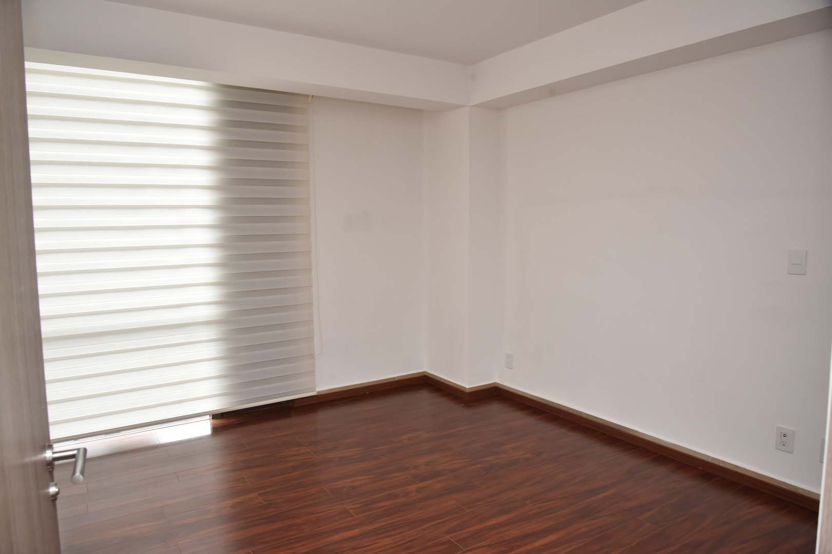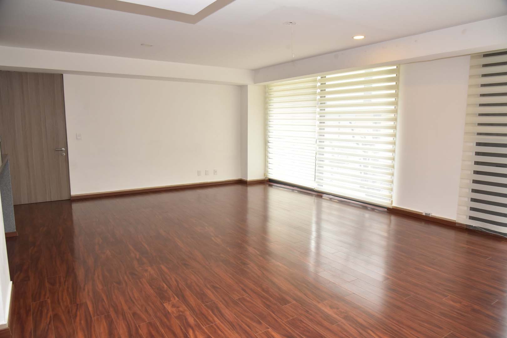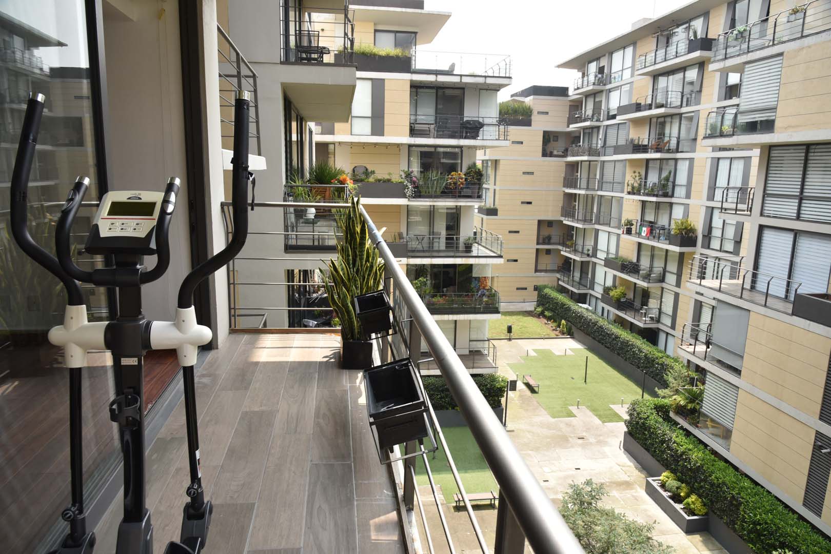 Con excelentes acabados, 128 m2. Extraordinaria iluminación. Departamento en dos niveles y balcón. Cuenta con tres recámaras, dos con closet y comparten un baño completo, la recámara principal con walking closet y baño completo. Adicional un medio baño, cocina integral abierta con barra de granito, estancia con pisos de madera, cuenta con persianas. Excelente vista al jardín central del conjunto, cuarto de lavado, 3 cajones de estacionamiento independientes en línea, elevador, solo 2 departamentos por piso. Excelente seguridad. Circuito cerrado y Vigilancia 24/7.