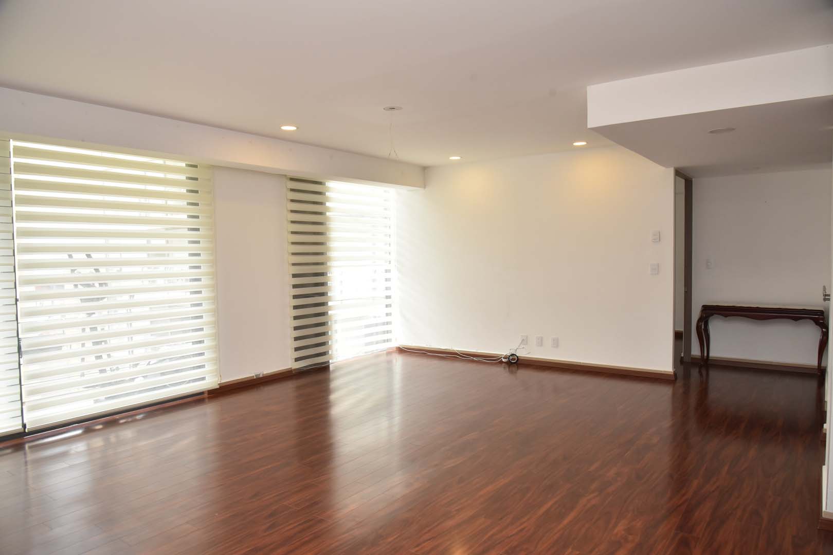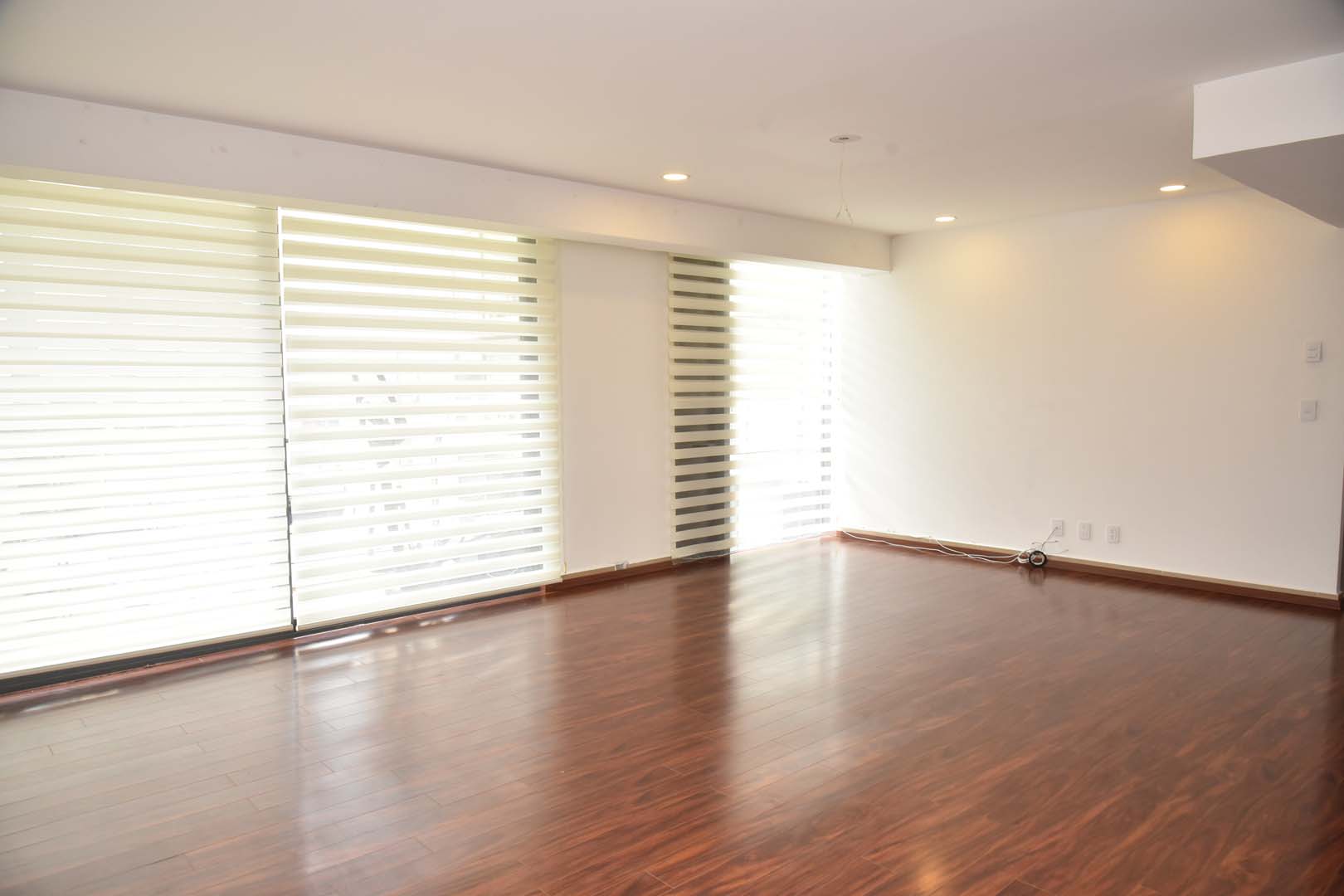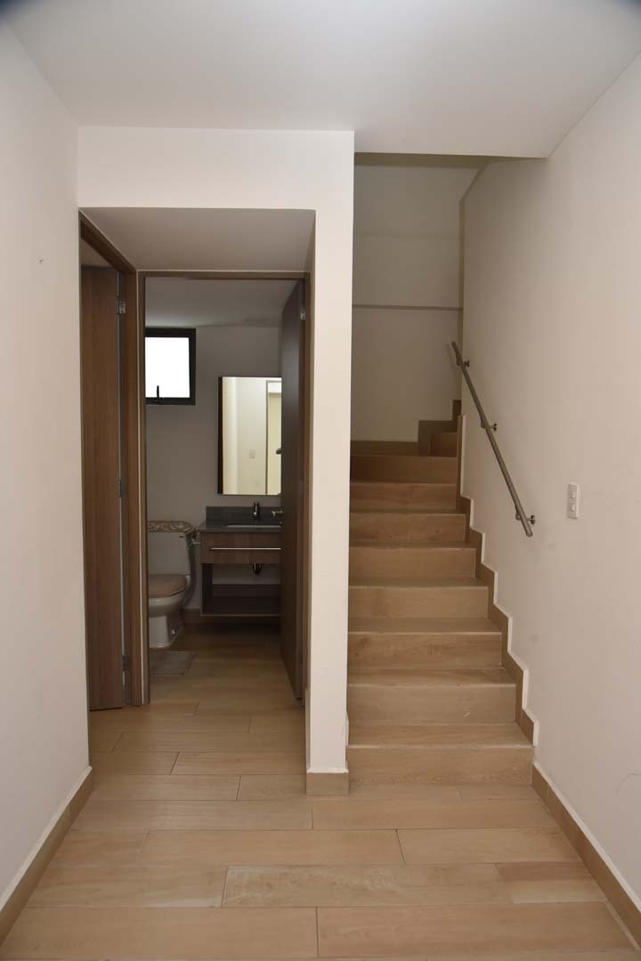 Con excelentes acabados, 128 m2. Extraordinaria iluminación. Departamento en dos niveles y balcón. Cuenta con tres recámaras, dos con closet y comparten un baño completo, la recámara principal con walking closet y baño completo. Adicional un medio baño, cocina integral abierta con barra de granito, estancia con pisos de madera, cuenta con persianas. Excelente vista al jardín central del conjunto, cuarto de lavado, 3 cajones de estacionamiento independientes en línea, elevador, solo 2 departamentos por piso. Excelente seguridad. Circuito cerrado y Vigilancia 24/7.